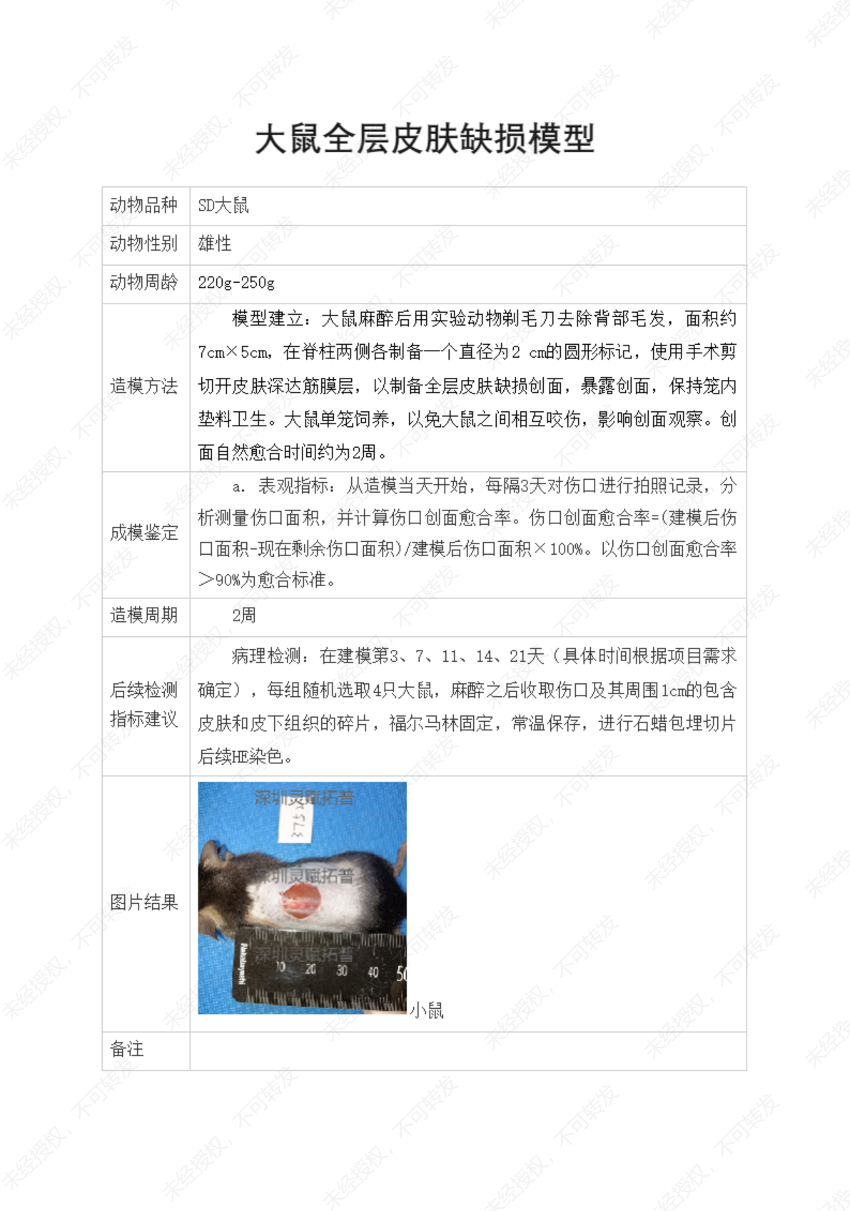 全层皮肤缺损模型